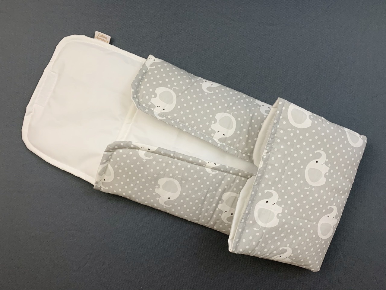 Mudador portátil acolchado para la muda del bebé, ideal y práctico para llevar en el bolso, interior en tela limpiable con paño húmedo. Puedes lavar en lavadora si lo deseas.