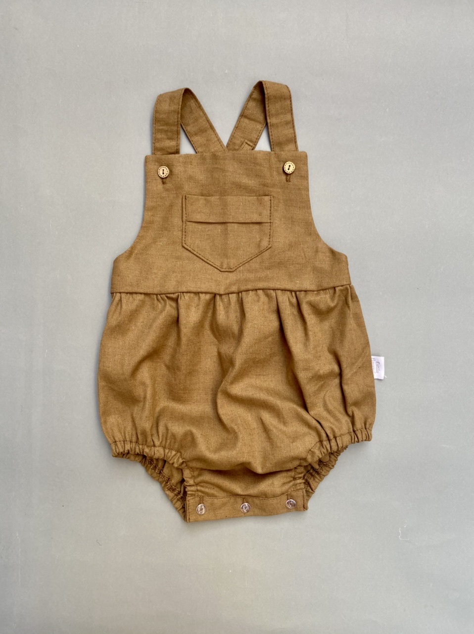 Trae broches en la zona del pañal y en tirantes.