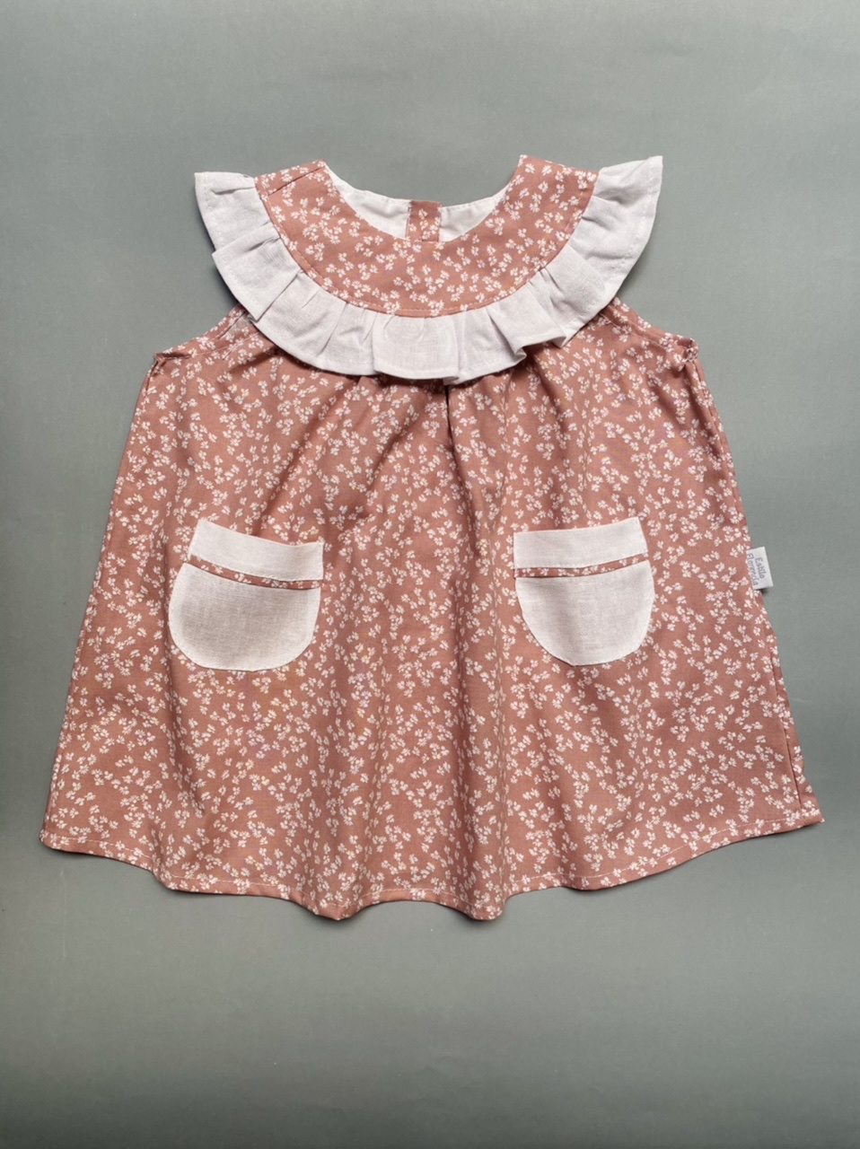Confeccionado en tela 100% algodón, se abrocha en espalda.